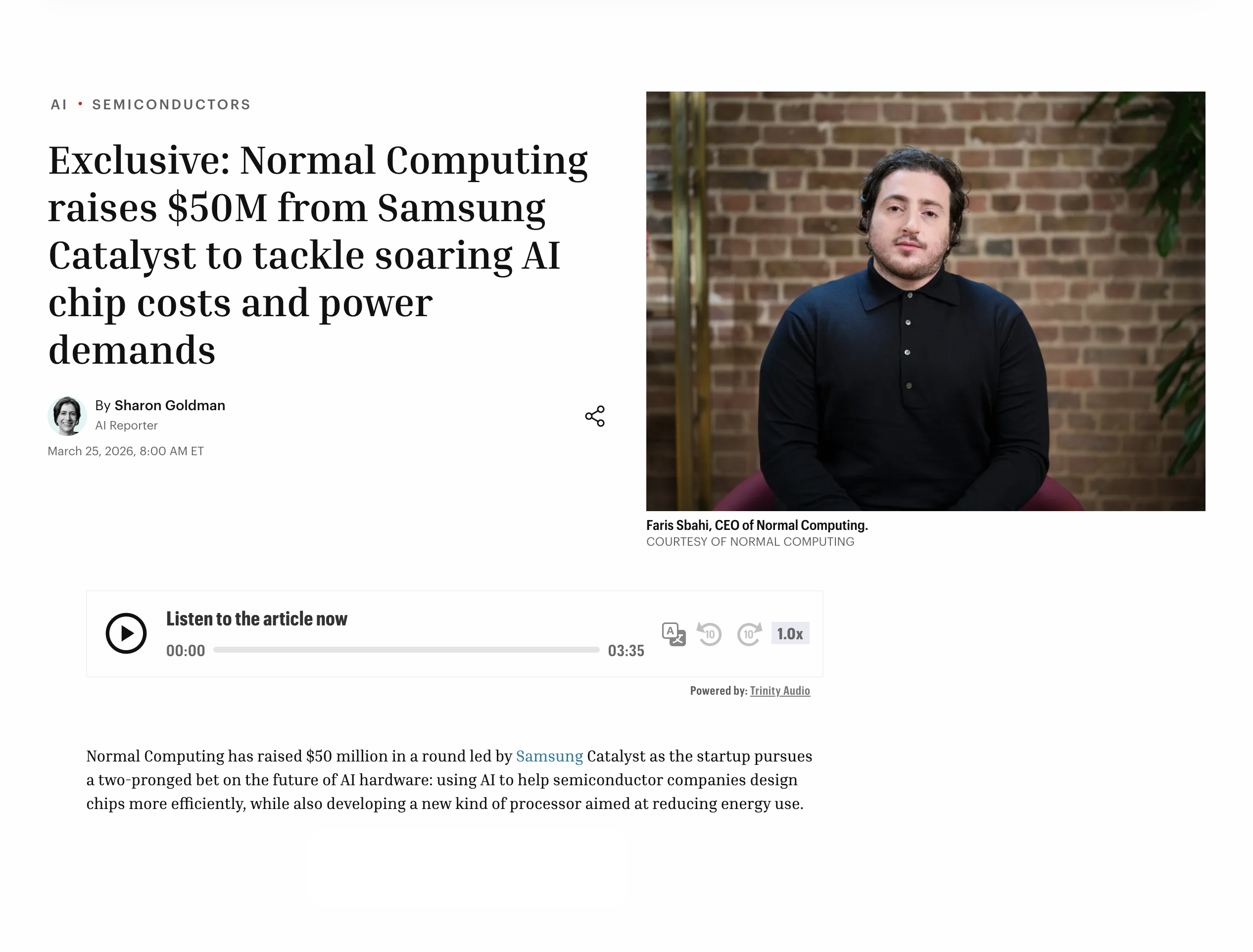 With the help of Normal EDA, and our closest semiconductor partners, we are building thermodynamic computing hardware that could reduce AI energy consumption by 1000x.